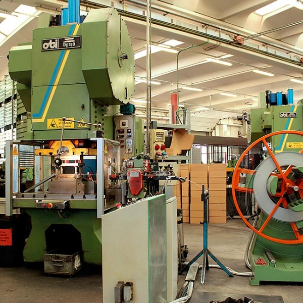 Il parco macchine GPB è costituito da presse a frizione fino a 250 t, integrate con PLC per la regolazione e il riconoscimento degli stampi, una tecnologia che permette di limitare i tempi di set-up, durante le operazioni di tranciatura lamiere. A queste si aggiunge una particolare pressa con transfert monobarra a 10 passaggi e passi regolabili da 50 a 250 mm. Gli asservimenti in dotazione nelle macchine per la tranciatura , permettono di eseguire particolari di diverse dimensioni, partendo da nastri con spessori da 0,1 a 6 mm, fino a 500 mm di larghezza.